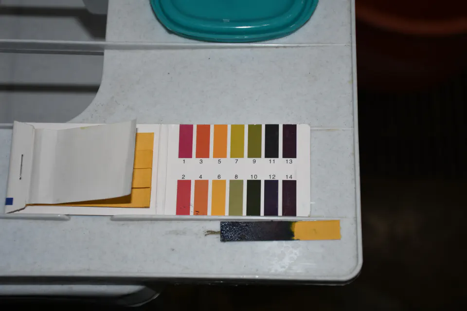実習の授業では、コンクリートが強アルカリ性であることを、リトマス試験紙を使って確認