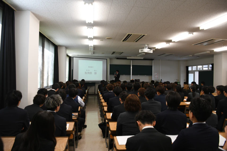 全体の式典が終了後、学科に分かれてのオリエンテーションが実施され、建築学科でも、学科長によるあいさつと1年生担任による各種説明などがあり、新入生たちは少し緊張気味に話に耳を傾けていました。